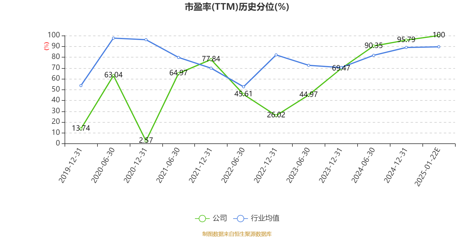 以本次披露业绩预告均值计算,公司近年市盈率(TTM)图如下所示: