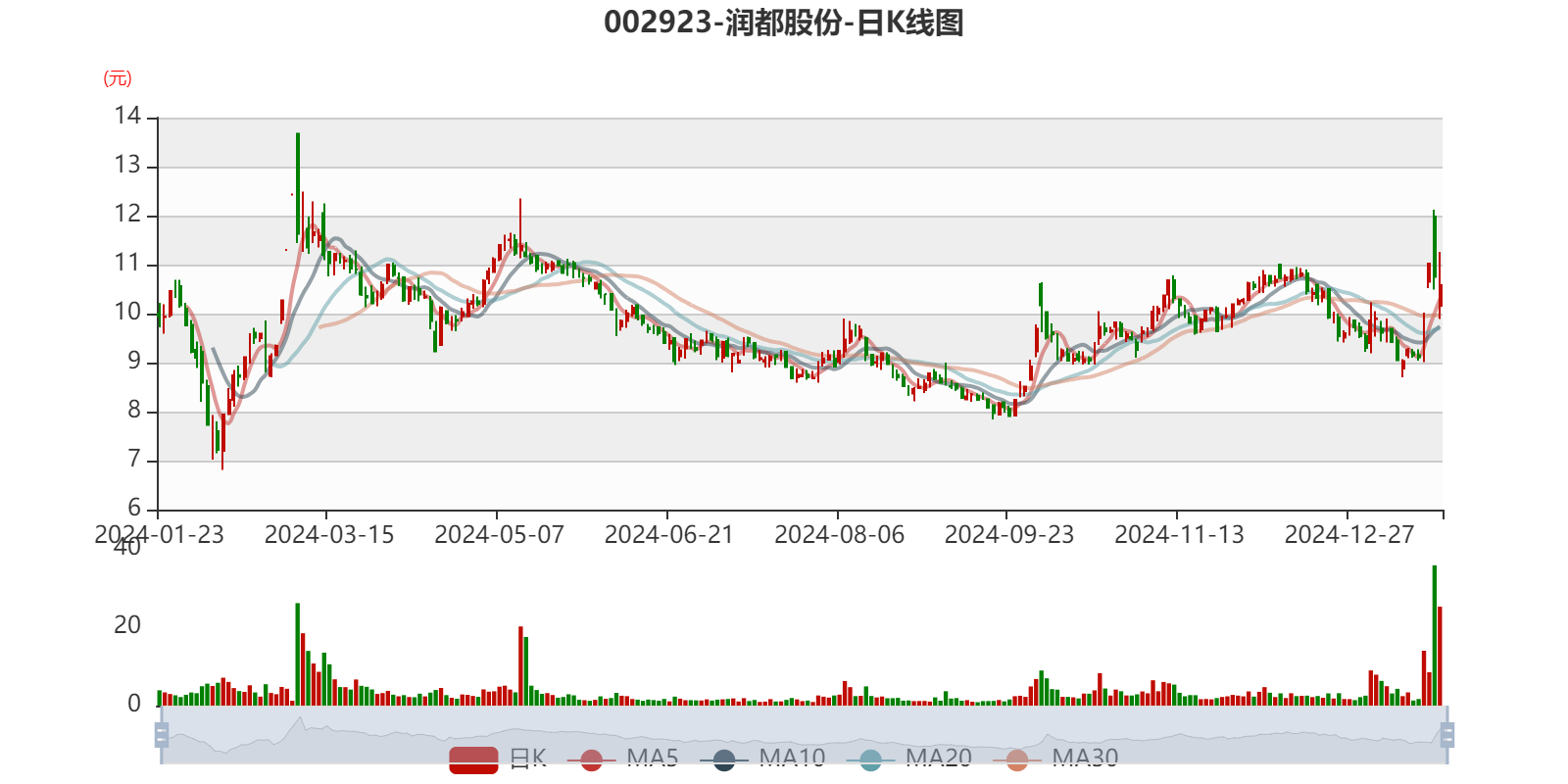 中证智能财讯润都股份(002923)1月22日晚间披露2024年度业绩预告,预计2024年归母净利润2800万元至4000万元,同比下降40.21%-58.15%;扣非净利润预计1800万元-2500万元,同比下降42.16%-58.35%;基本每股收益0.08元/股-0.12元/股。以1月22日收盘价计算,润都股份目前市盈率(TTM)约为88.58倍-126.54倍,市净率(LF)约3.08倍,市销率(TTM)约2.9倍。